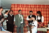 Jetzt geht die Uhr richtig Das Theaterspielen erweckte auch das Interesse der Jugend und so konnten mit Claudia Berndorfer, Christian Schlögl und Arthur Reichenbacher jun. drei neue Spieler ihre ersten Schritte auf den “Brettern die die Welt bedeuten” machen. Günther Kainzlbauer legte aus sehr persönlichen Gründen sein Amt als Souffleur nieder. Mit Robert Dobler fanden wir einen guten Ersatz. Martina und Christian Wolf knüpften an eine sehr alte Eringer Tradition an, nach der der Friseur von Ering auch das Schminken der Theaterspieler übernimmt. Sie hatten auch gleich viel zu tun, machten ihre Sache aber ganz hervorragend. Bei der zweiten Aufführung passierte am Ende eine lustige Sache. Bei der Vorstellung aller Mitwirkenden wird unser Souffleur immer aus seinem Kasten herausgezogen. Dabei blieb er mit seiner Jeans an einem hervorstehenden Nagel hängen. Gerold Bauer hörte zwar das Reissen von irgend etwas, glaubte aber, es wäre die Liege und zog unseren Robert extra kräftig heraus. Dieser wurde den lachenden Publikum eben mit “Designerjeans” vorgestellt. Bei der vorletzten Aufführung bekam unser Neuling Christian Schlögl einen gehörigen Schrecken, als in seiner Szene plötzlich der Spiegel von der Wand fiel. Gott sei Dank wurde der Spiegel in diesem Akt nicht benötigt und während der Pause wurde er wieder notdürftig repariert. Der Reinerlös der Nachmittagsvorstellung wurde für die Renovierung unserer Pfarrkirche gespendet. Dank des guten Besuches konnte Spielleiter Willi Hamberger unserem Pfarrer Herbert Czech am Ende der Vorstellung ein Kuvert mit 600.-- DM überreichen. Was zu diesem Zeitpunkt noch niemand ahnte, dieses Stück war das letzte, welches wir als “Theatergruppe der Wasserwacht Ering” aufführten. Am 20. Oktober 1994 wurde die Gruppe aus organisatorischen Gründen als “Eringer Theatergrupp’n e.V.” als eigenständiger Verein gegründet. Die Darsteller waren: Claudia Berndorfer, Sieglinde Lew, Elisabeth Riedleder, Ulli Schlögl, Monika Wimmer, Gerold Bauer, Willi Hamberger, Walter Hautz, Arthur Reichenbacher jun., Christian Schlögl, Gottfried Schlögl und Karl Widl. Souffleur: Robert Dobler Bühnenmeister: Erhard Rügner Maske: Marina und Christian Wolf Regie: Willi Hamberger |